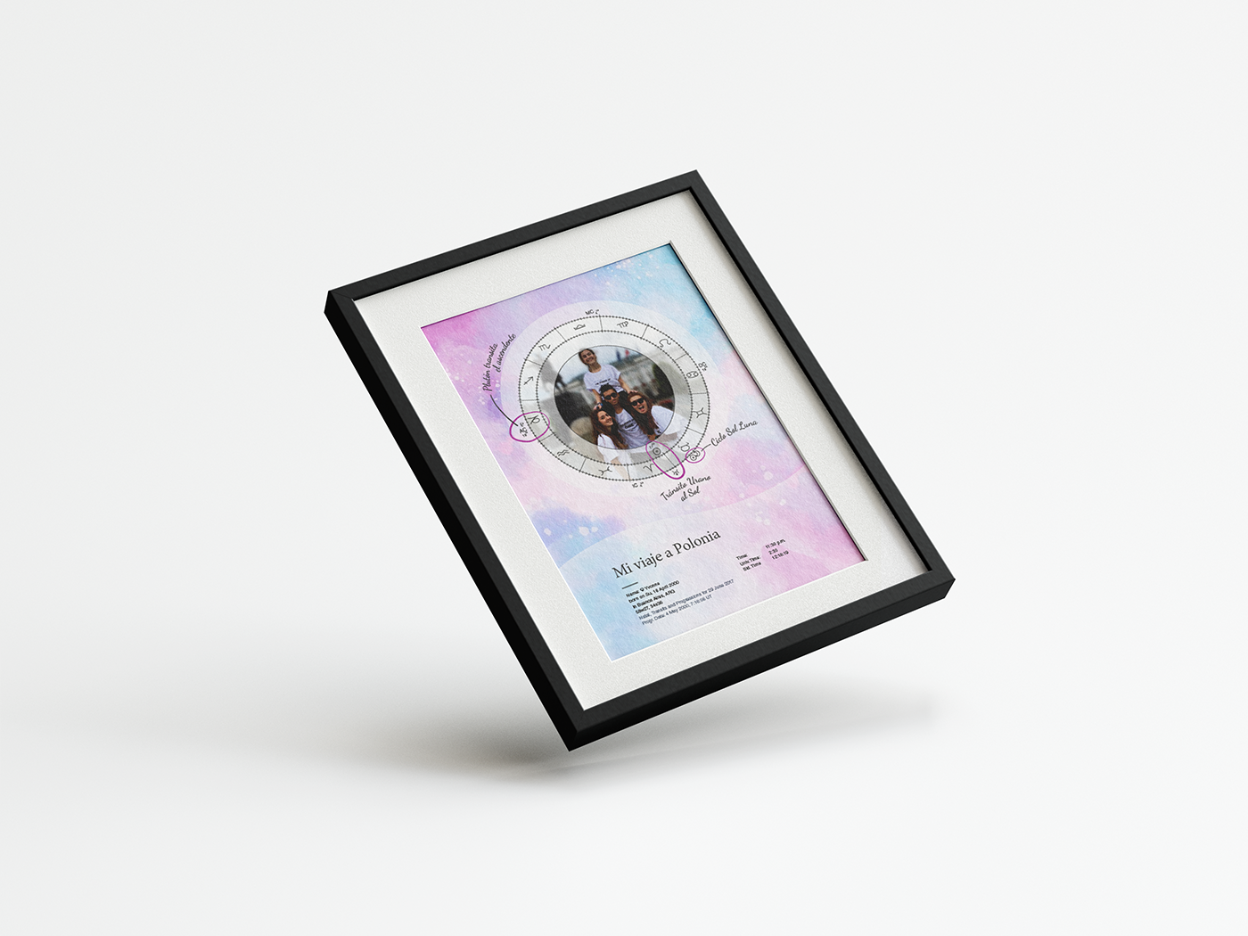 Este retrato fusiona una carta natal con una fotografía para crear algo único. Además, para añadir una verdadera distinción, este obsequio lleva los comentarios de la astróloga María Blaquier sobre qué sucedía en el Universo en el preciso instante de la Carta.